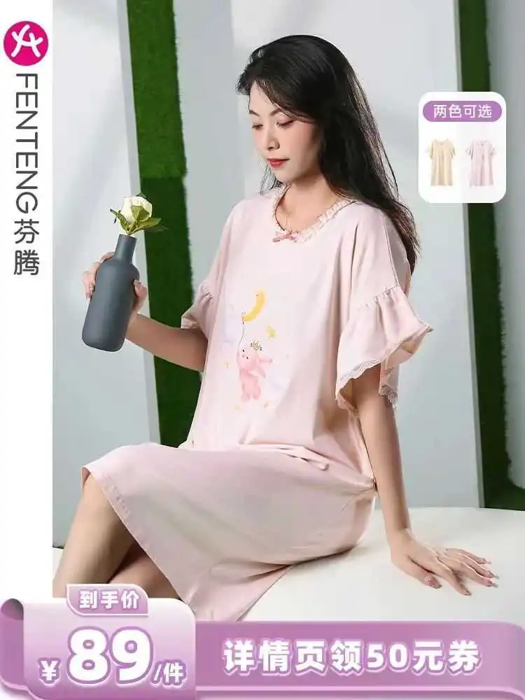 【李佳琦直播间】芬腾睡裙女夏季薄款可爱短袖睡衣女款家居服中裙
