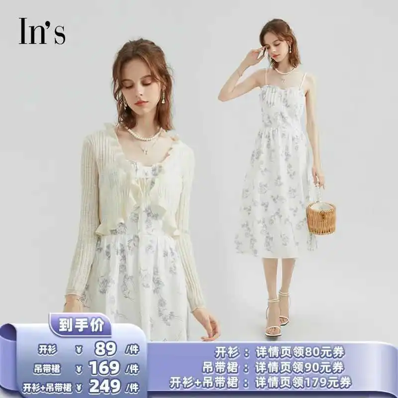 【李佳琦直播间】In's针织开衫碎花吊带套装2023夏季新款