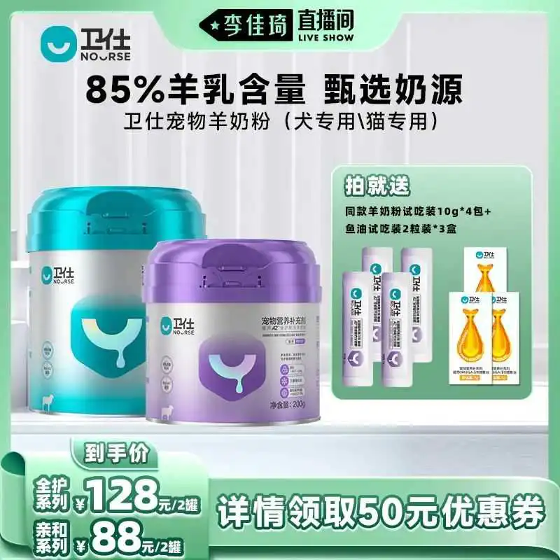 【李佳琦直播间】卫仕猫咪羊奶粉宠物英短新生营养品幼猫羊奶粉