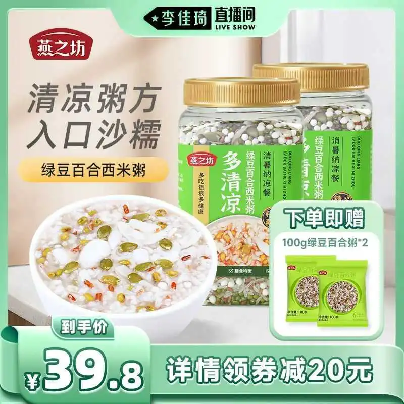 【李佳琦直播间】【燕之坊_绿豆百合西米粥*2罐】五谷杂粮米早餐