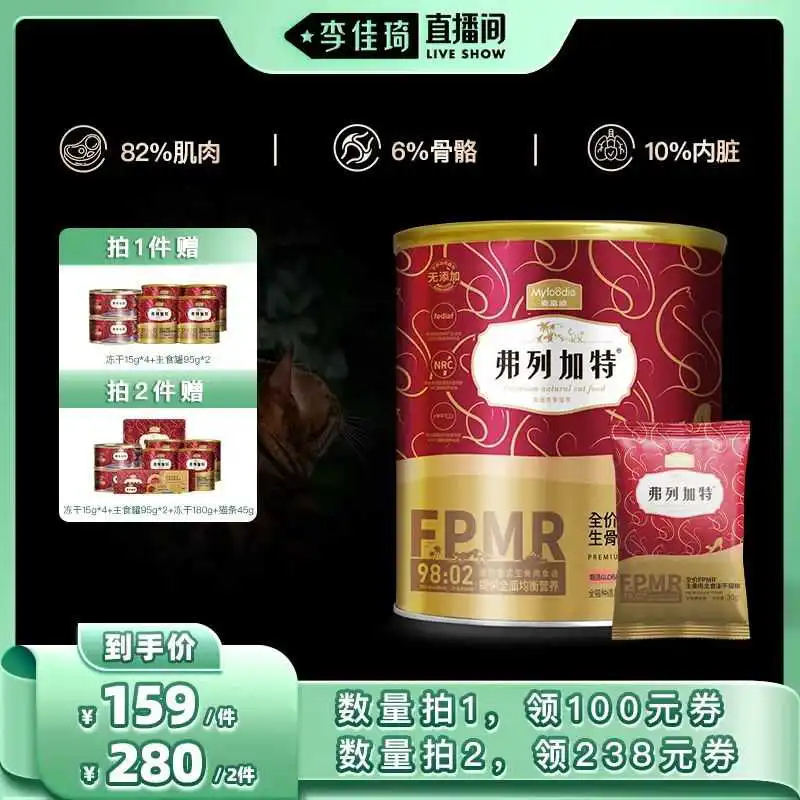 【李佳琦直播间】弗列加特FPMR鲜肉主食冻干480g兔牛鸡肉官方旗舰