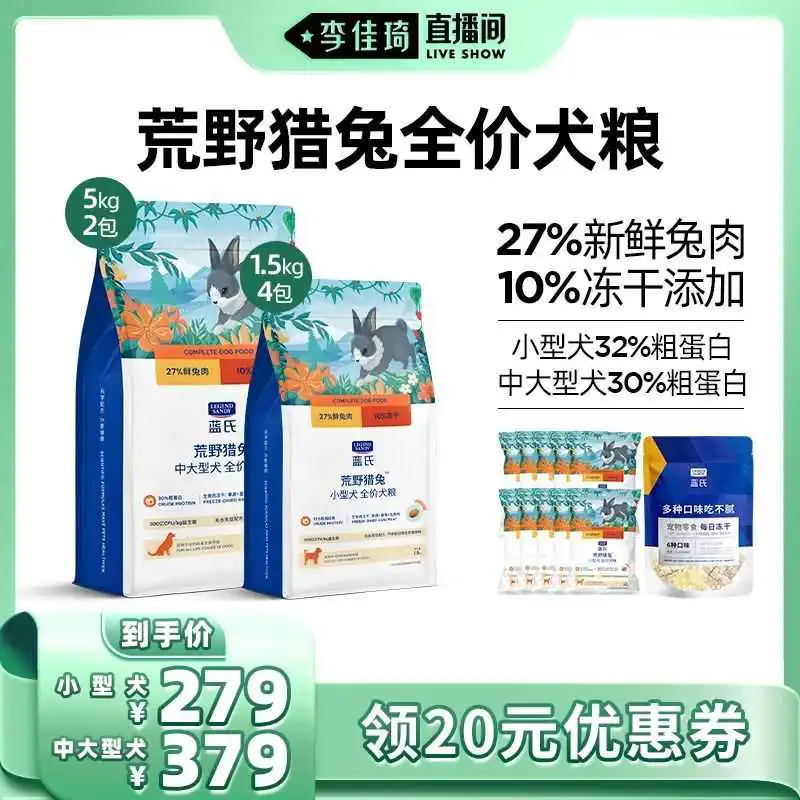【李佳琦直播间】蓝氏荒野猎兔冻干狗粮小型犬中大型犬全价狗主粮