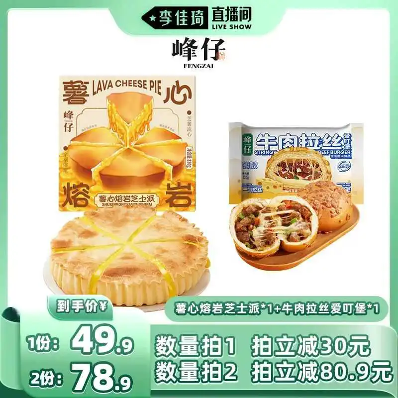 【李佳琦直播间】峰仔西式面点组合薯心熔岩芝士派1盒+爱叮堡1个