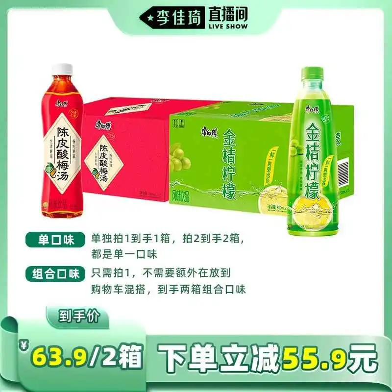 【李佳琦直播间】康师傅(陈皮酸梅汤+金桔柠檬)组合500ml*30瓶