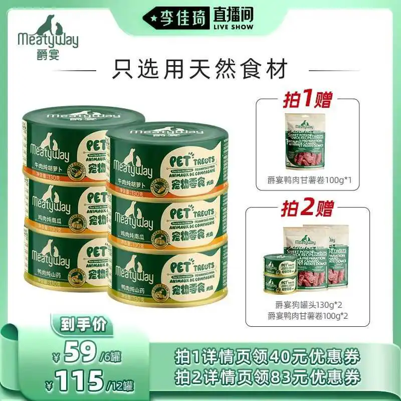 【李佳琦直播间】Meatyway爵宴宠物零食狗罐头拌饭营养增肥零食罐