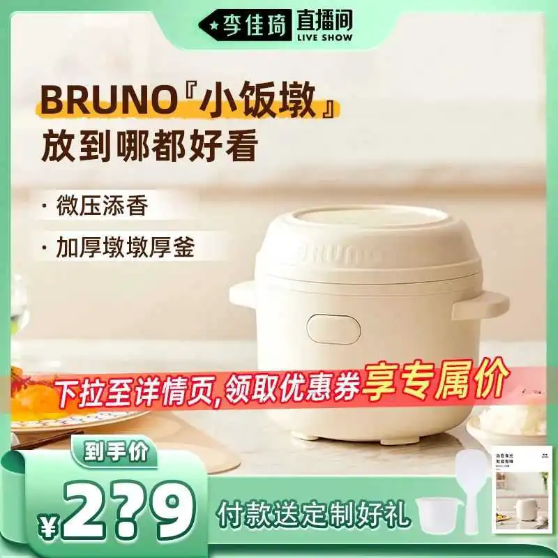 【李佳琦直播间】BRUNO小饭墩电饭煲家用1-2人迷你小型煮粥电饭锅