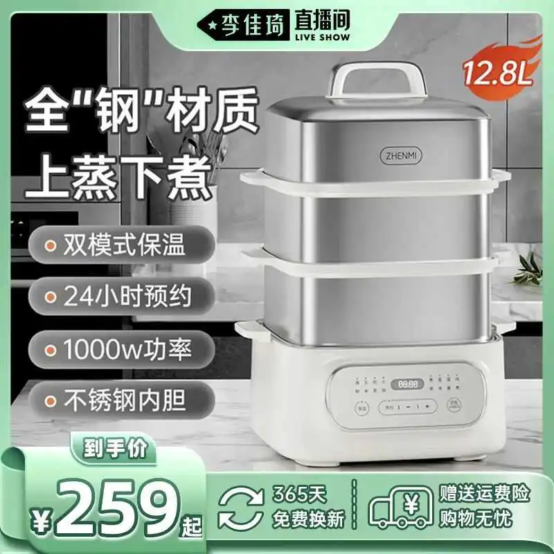【李佳琦直播间】臻米不锈钢电蒸锅多功能家用多层大容量蒸煮锅