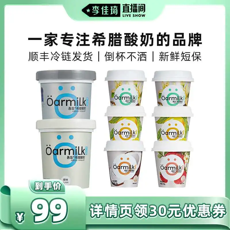 【李佳琦直播间】Oarmilk吾岛希腊酸奶720g大桶+乐趣果味100g*6杯