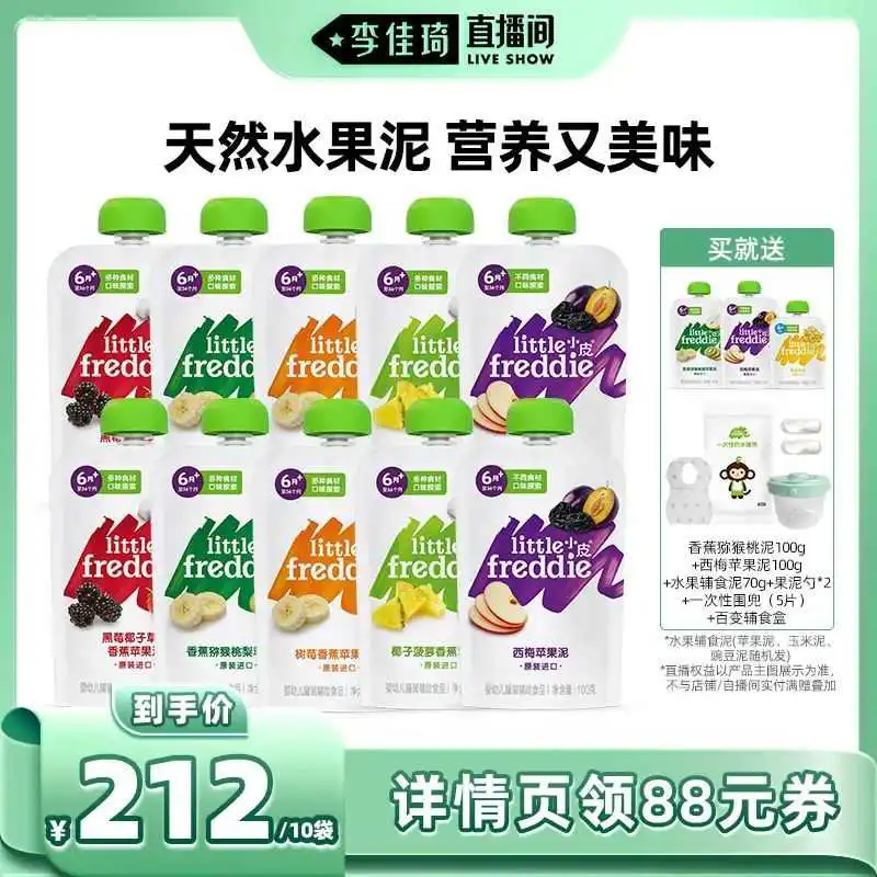 【李佳琦直播间】小皮婴幼儿果泥无添加盐糖宝宝辅食泥水果西梅泥