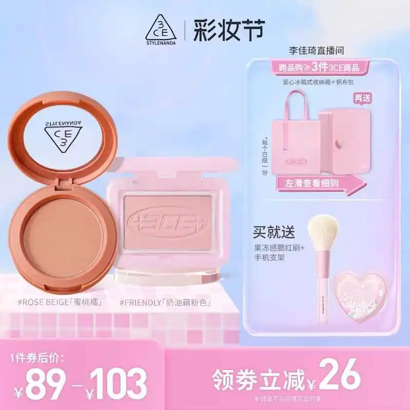 【李佳琦直播间】3CE小方块腮红 粉紫裸米自然修容腮紫腮蓝NH*