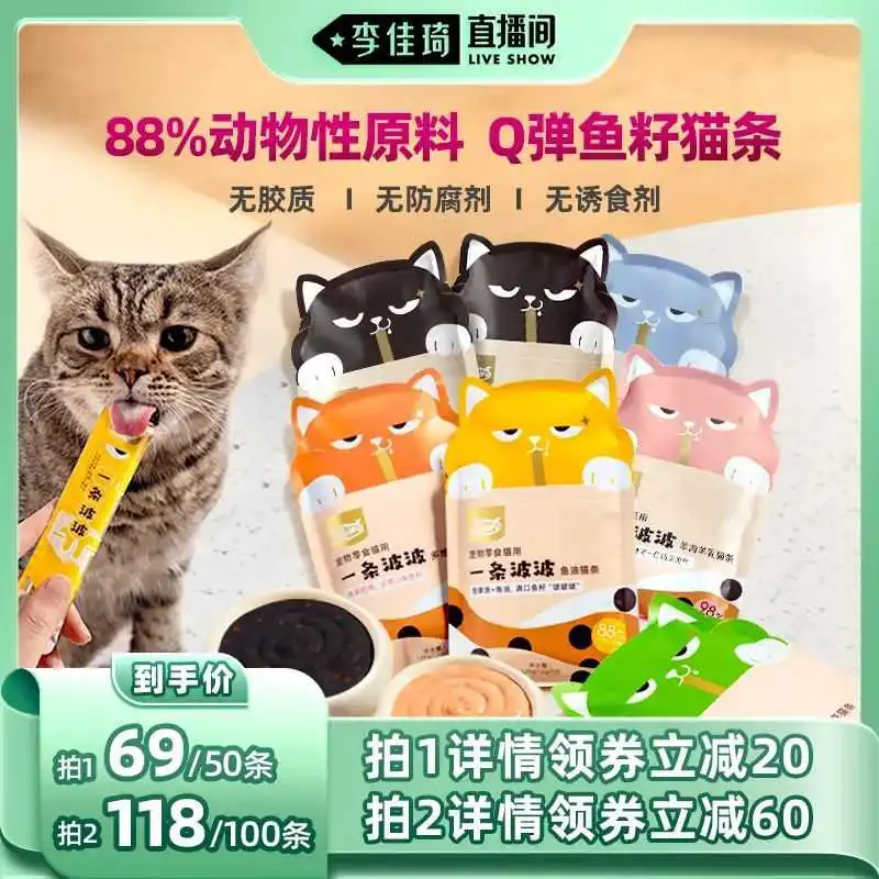 【李佳琦直播间】WoWo喔喔一条波波猫条猫咪零食成幼猫无诱营养