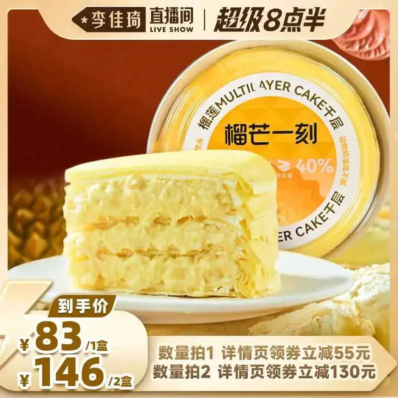 【李佳琦直播间】榴芒一刻6英寸泰国金枕榴莲千层蛋糕500g