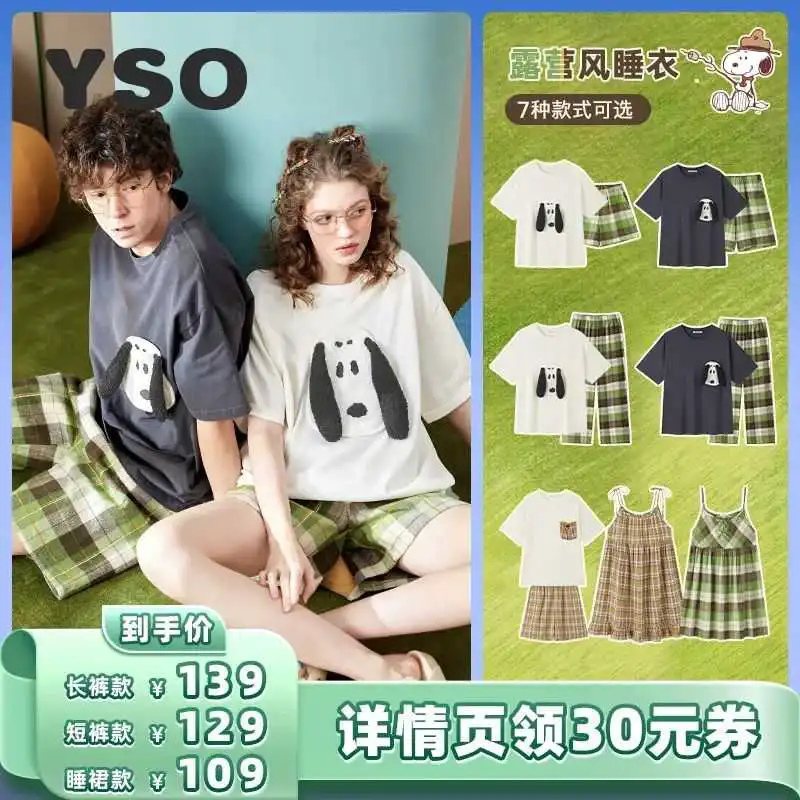 【李佳琦直播间】yso史努比夏季情侣睡衣格子睡裙家居服