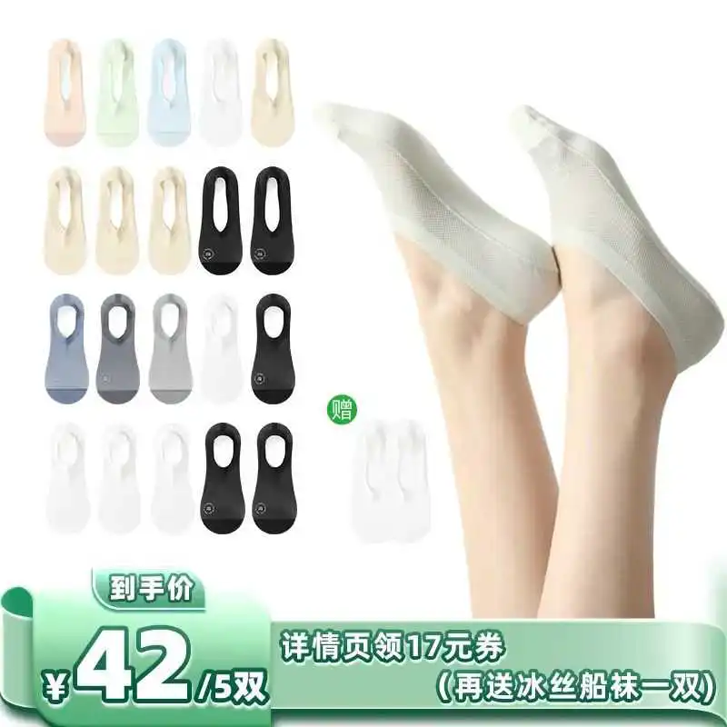 【李佳琦直播间】PRIMEET/派米夏季冰丝船袜女硅胶防滑男隐形袜子