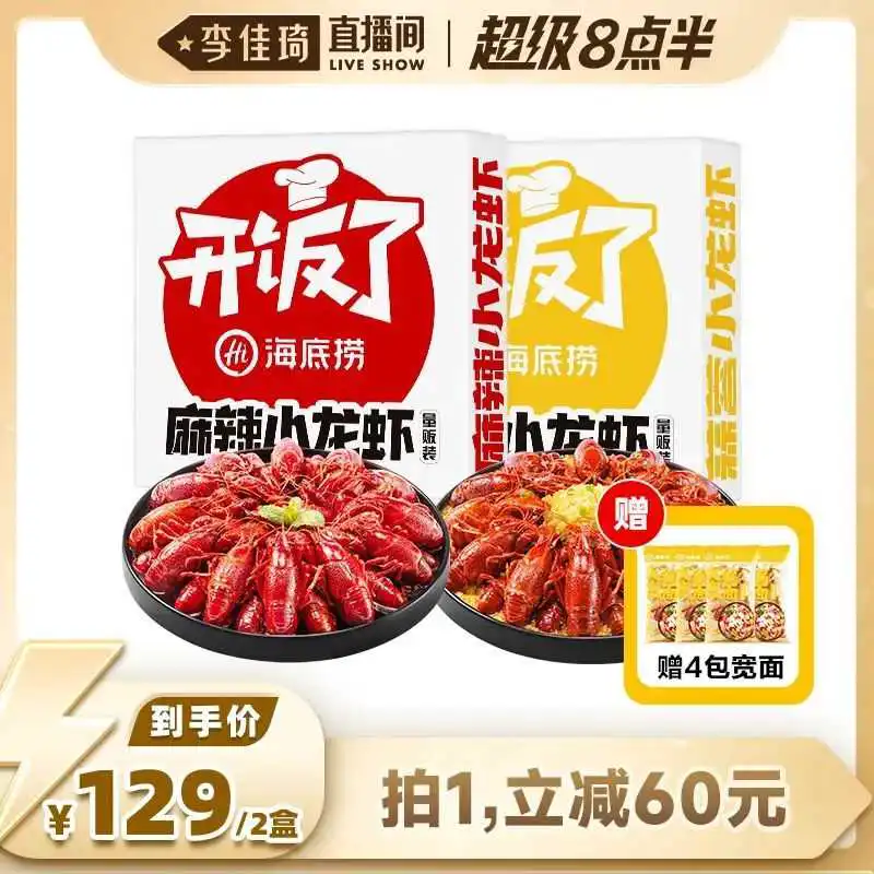 【李佳琦直播间】海底捞量贩装麻辣小龙虾蒜蓉整虾加热即食2盒