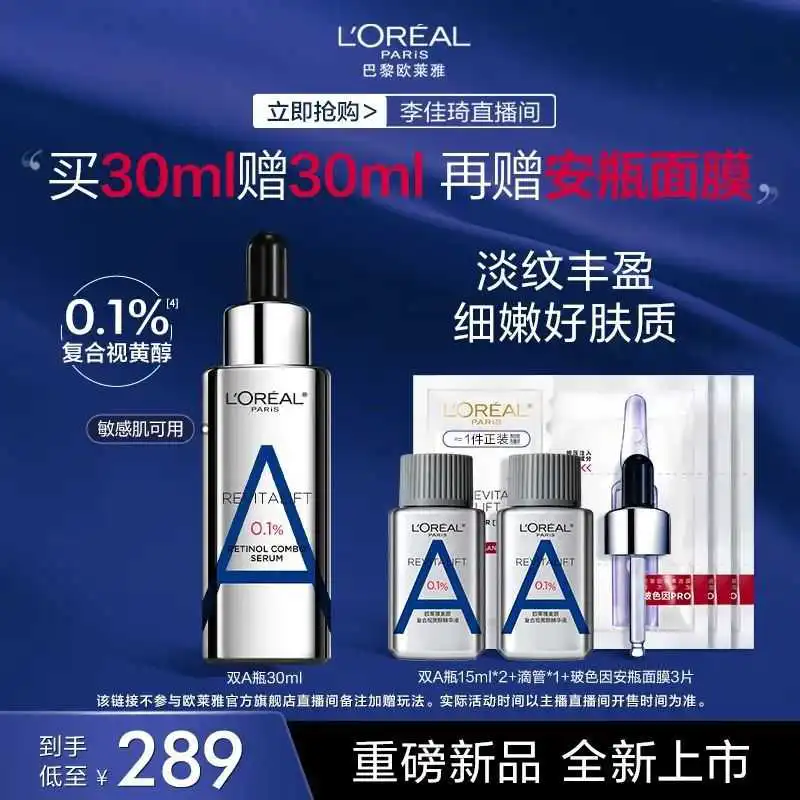 【李佳琦直播间】欧莱雅双A瓶精华液复合a醇抗皱淡纹紧致*