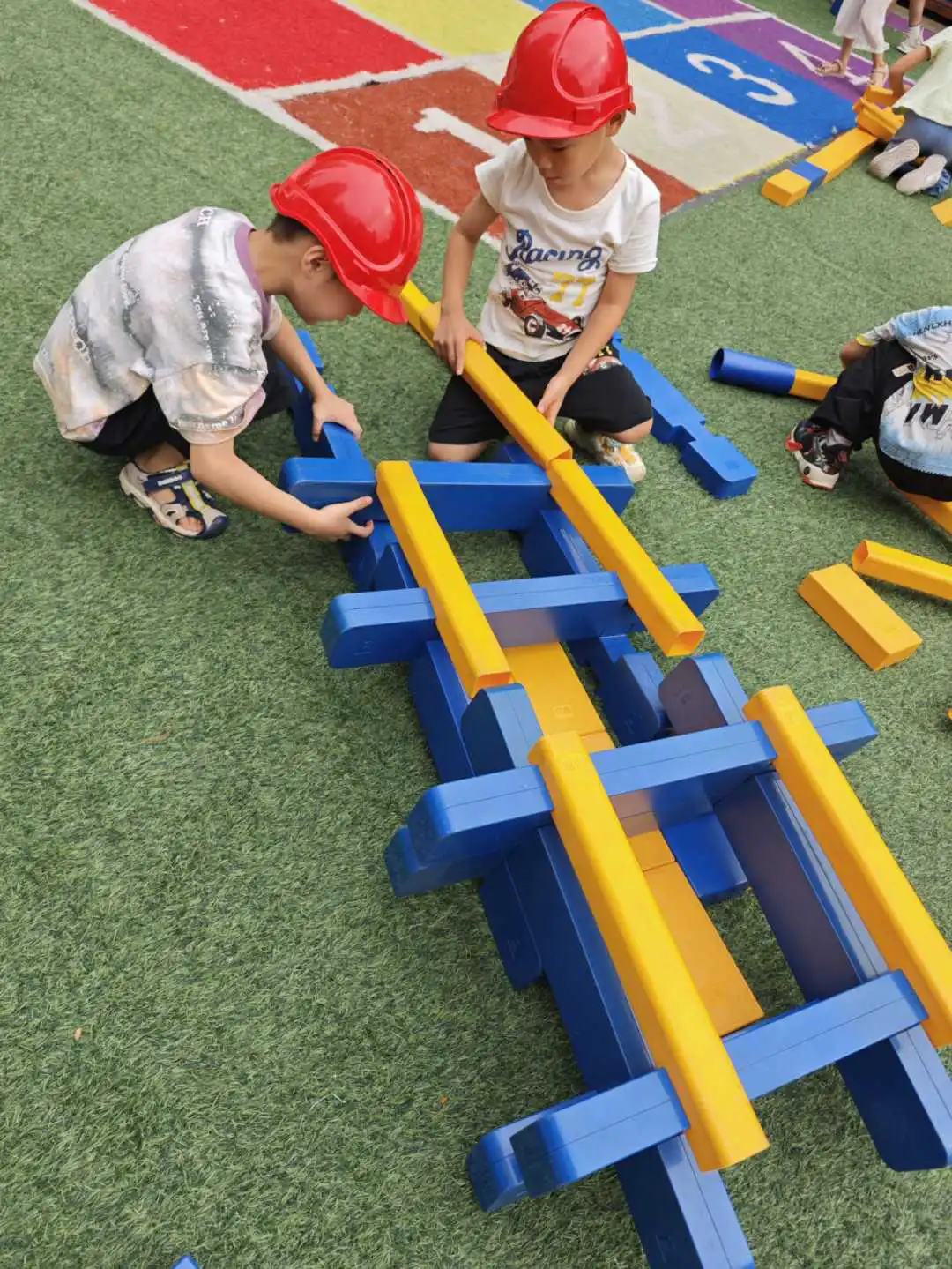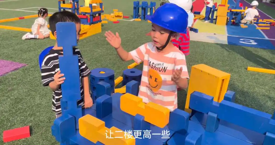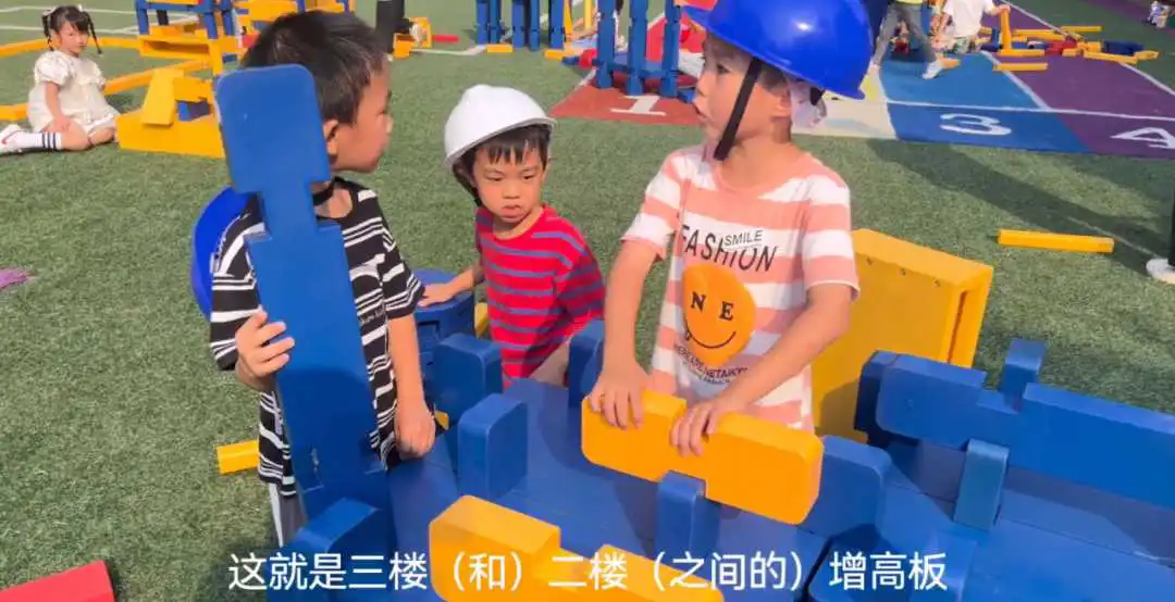 在整个搭建的过程中,孩子们不断地用语言进行沟通,