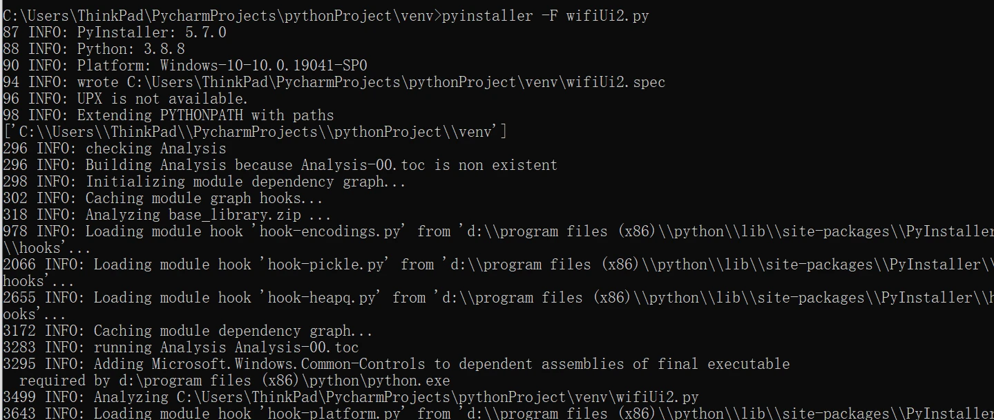 2,安装完后执行 pyinstaller -F xxx.py命令,这里的xxx.py为程序执行的主文件。