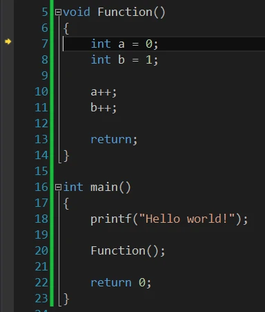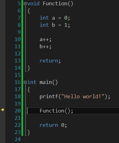 如果程序是这样,在调用函数时,如果按,程序会一次执行完整个函数。但如果你按,箭头会进入函数内部,就像这样: