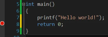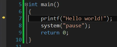 左边黄色的箭头表示当前程序的执行位置。按一下F10键,箭头指向的这行代码就被执行,同时箭头指向下一行。这样完全按照程序运行的过程执行。