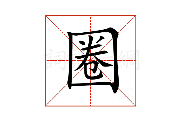 圈,通用规范汉字,一级汉字,序号2302,多音字,读音是(quān、juàn 或 juān),囗部,共11画,形声字,全包围结构,五行属木。