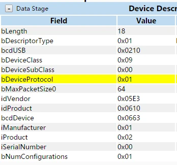 单TT描述符集中,其设备描述符的bDeviceProtocol必须为1,并且其接口描述符中的bInterfaceProtocol必须为0;