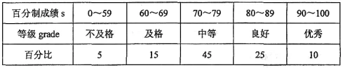 23.将百分制成绩分成五个等级,已知成绩的对应关系及分布情况如下表所示: