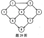 24.给定有向无环图G如题29图所示,写出G的5种不同的拓扑排序序列。