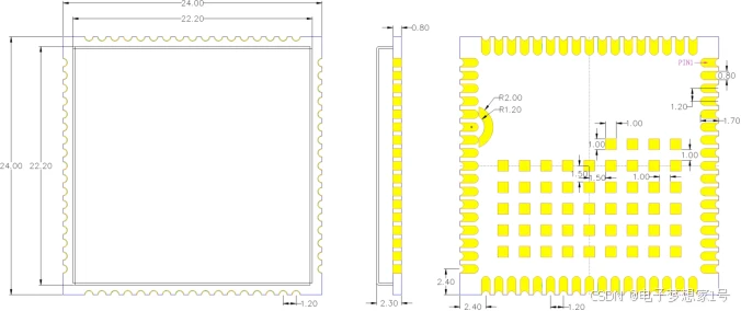 该章节描述模块的机械尺寸以及客户使用该模块设计的推荐封装尺寸。