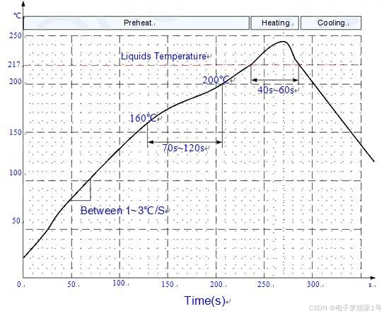 为避免模块反复受热损伤,建议客户 PCB板第一面完成回流焊后再贴模块。推荐的炉温曲线图如下图所示: