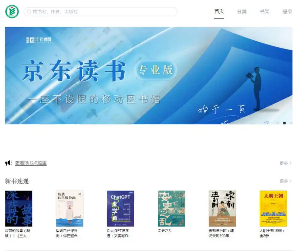 京东读书专业版是京东开发的以新书为主的专为高校读者打造的可随时、随地看书和听书的电子图书阅读平台,平台资源丰富、阅读体验良好。