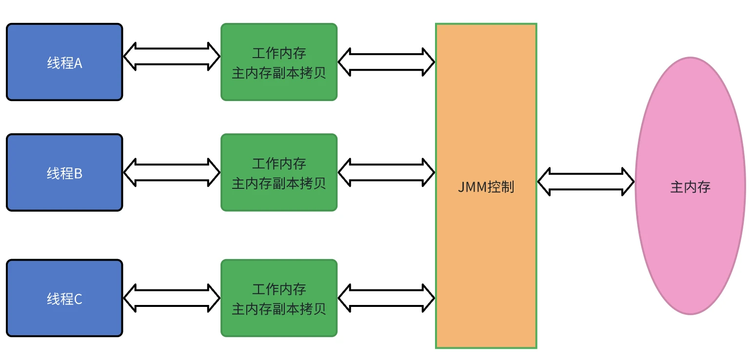 - 工作内存是JMM的一个抽象概念,并不真实存在,它涵盖了缓存、写缓冲区、寄存器以及其他的硬件和编译器优化。工作内存中存储了该线程读/写共享变量的拷贝副本。