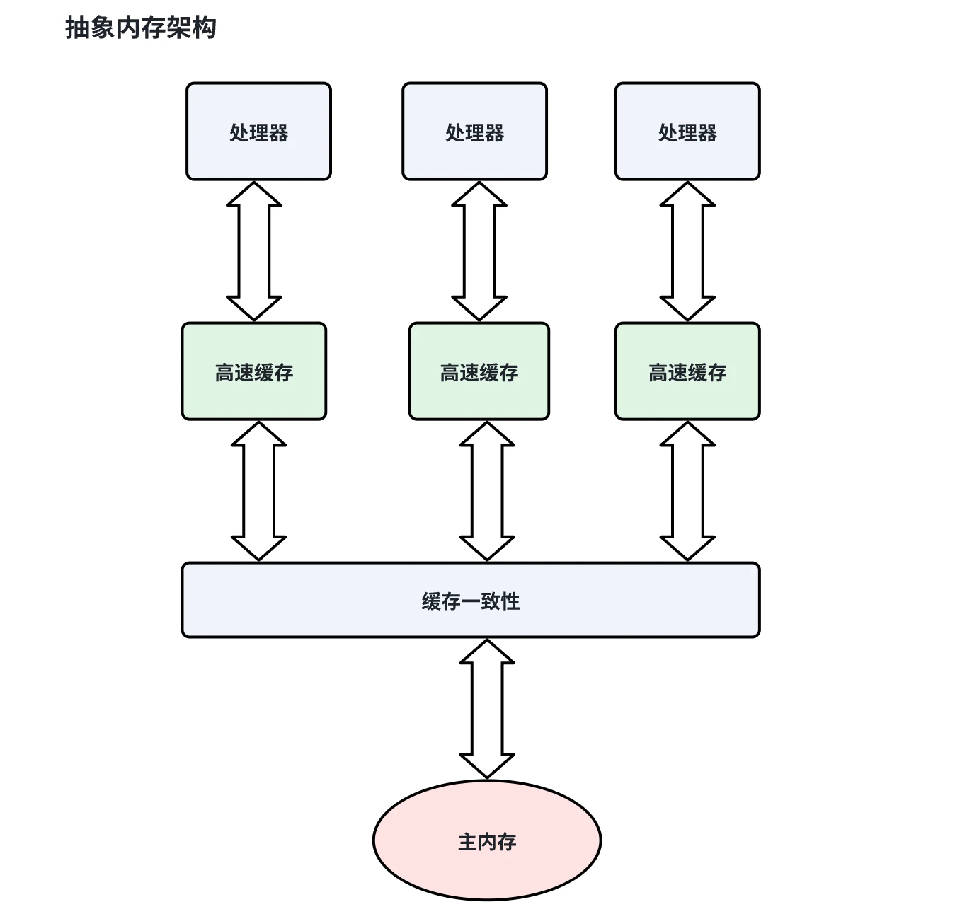 由于主存与 CPU 处理器的运算能力之间有数量级的差距,所以在传统计算机内存架构中会引入高速缓存来作为主存和处理器之间的缓冲,CPU 将常用的数据放在高速缓存中,运算结束后 CPU 再将运算结果同步到主存中。
