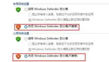 8、然后勾选将两个防火墙关闭,这样就可以安装字体了。