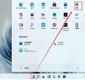 5、接着点开开始菜单,然后选择上方的“设置”。
