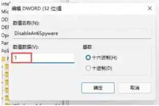 3、在右侧新建一个“DWORD”值,并命名为“DisableAntiSpyware”。
