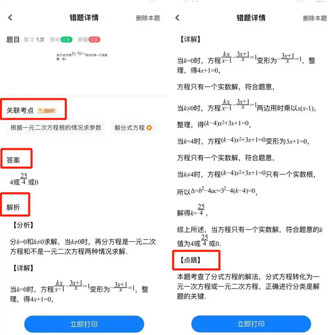 所以,针对每道错题,app会把“关联考点”、“答案”、“解析”、“试题点睛”全都展示出来。