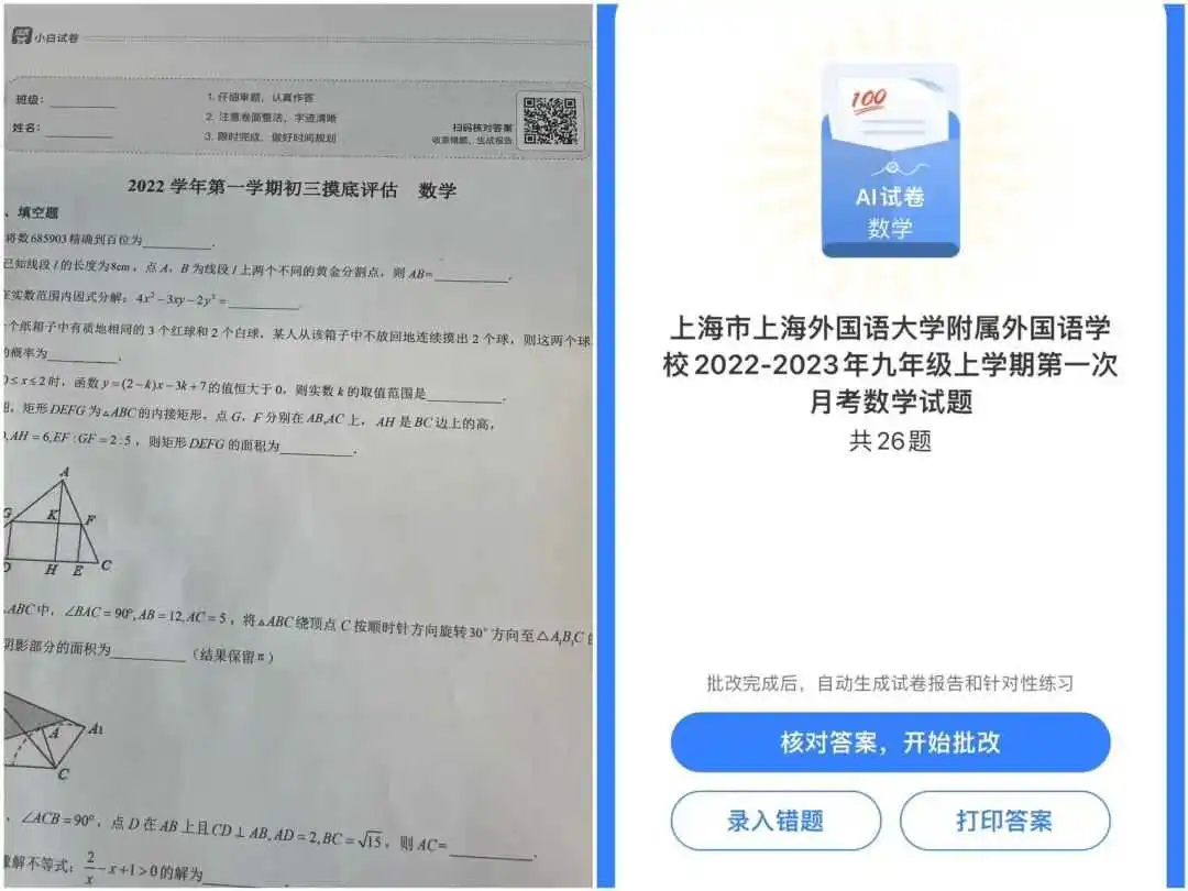 孩子做完试卷后,小白试卷宝还可以实现扫码批改,查看答题情况。