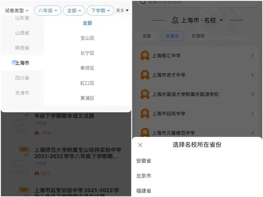 试卷资源,覆盖了31个省,比如,光北京就有1.2万份试卷,上海1万份,广州7k份……