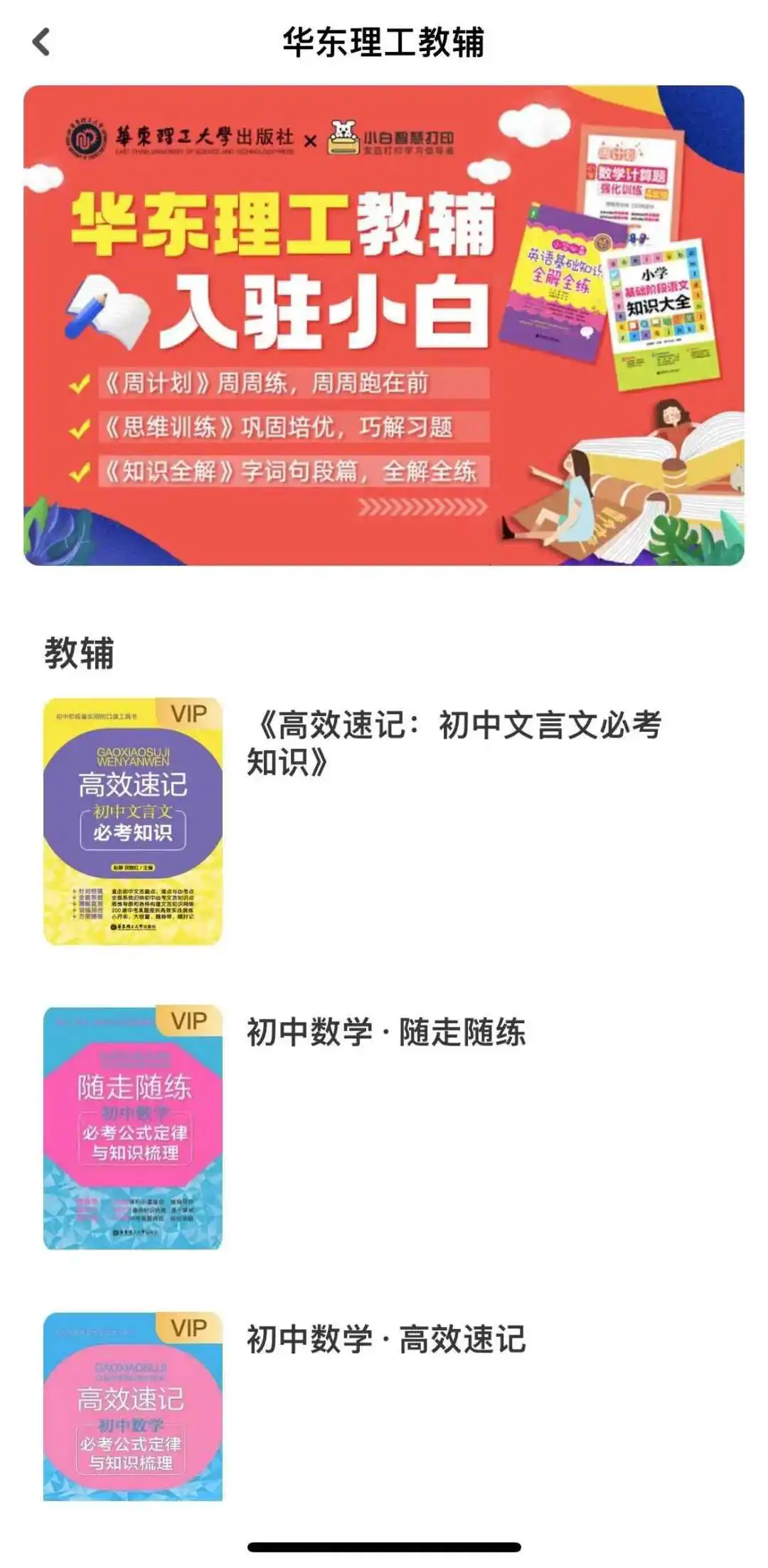 这部分包括了华东理工大学出版社出版的语文、数学、英语类教辅,可以批量打印出来直接做。