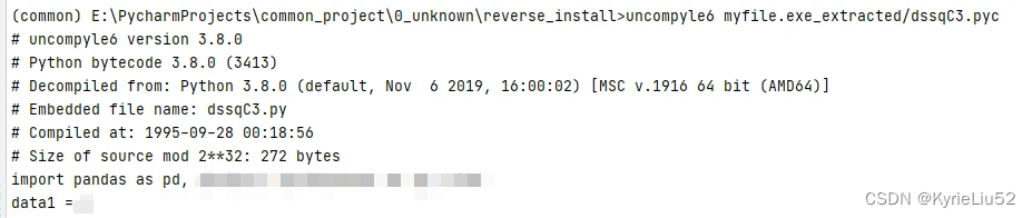然后输出反编译命令,参数就是刚刚生成的pyc文件