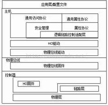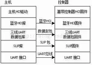 HCI固件:HCI固件位于蓝牙控制器中,固件主要内容有:中断向量表、堆栈设计、初始化程序和蓝牙处理程序。HCI固件通过访问控制硬件状态寄存器、控制寄存器、事件寄存器、基带命令和链路管理命令执行HCI命令。蓝牙系统的MCU在蓝牙处理程序控制下,会读取来自上层协议栈的命令,然后根据命令配置基带层的相应寄存器。反之基带层接收到信息后反馈给MCU,MCU通过HCI物理接口递交这些信息至上层协议栈,上层协议栈根据这些信息,再产生新的命令进行处理。