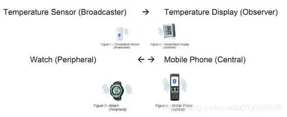 - 广播者,广播者可以持续广播信息,和从机的唯一区别是不能被主机连接,只能广播数据