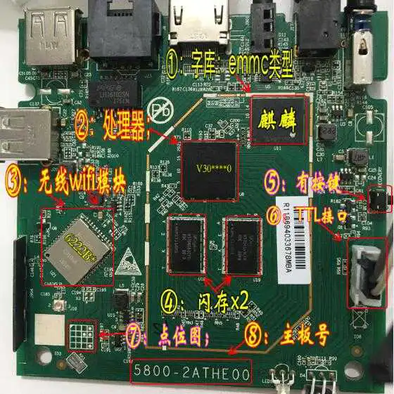 下载固件前请先打开后盖看下里面的主板上的芯片,有的在散热片下面,