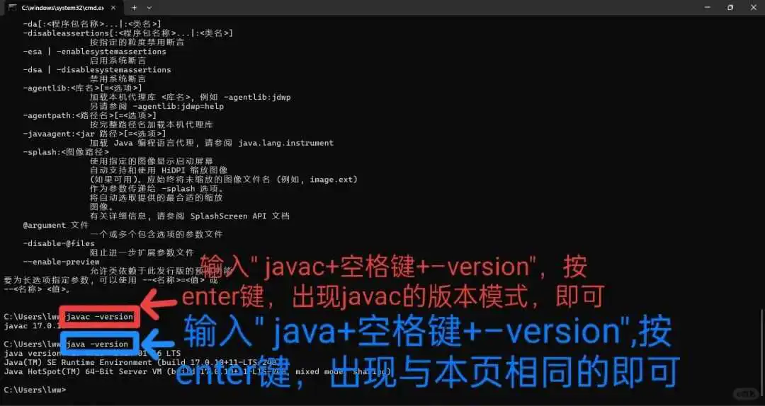通过cmd操作来验证jdk是否下载成功。