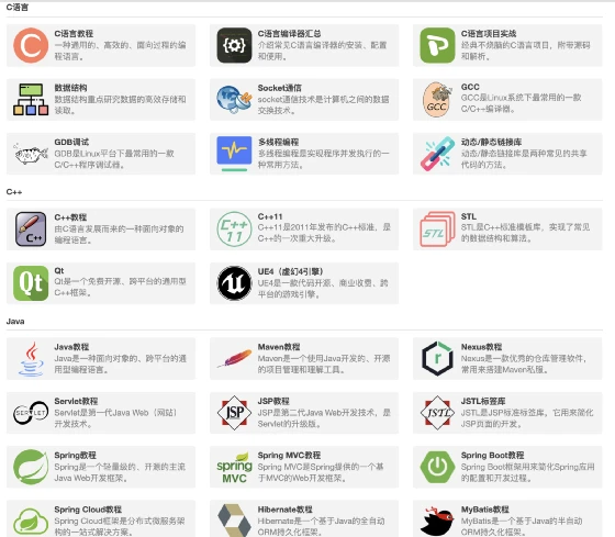 比较官方的教程库,包含前端、后端的常见技能,学习必备帮手吧
