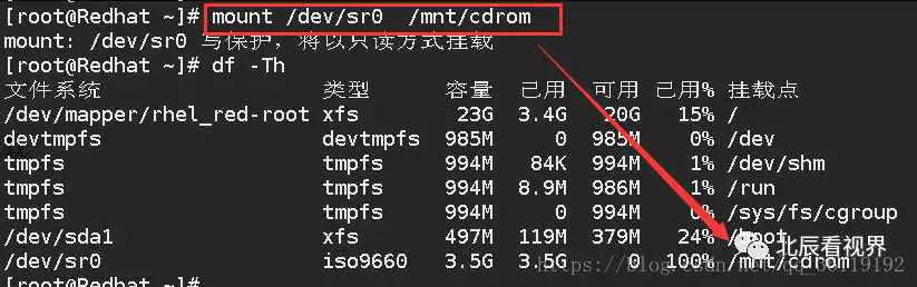 在虚拟机系统中,我们的 iso 文件是 /dev/sr0 设备,系统会默认把我们的iso文件挂载到 /run/media/$username/ 目录下。但是现在我们要将iso文件挂载到 /mnt/cdrom 下。如果mnt目录下没有cdrom,那么我们自己新建一个。