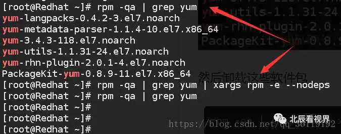 rpm -qa | grep yum | xargs rpm -e --nodeps #不检查依赖关系,直接卸载