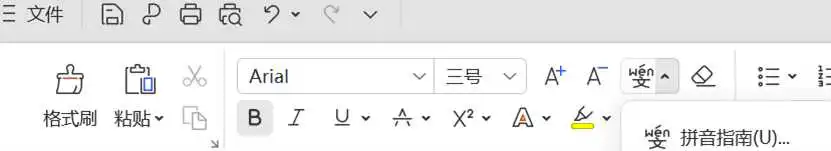 点击“开始”菜单中的“拼音指南”即可查询相应文字的拼音。