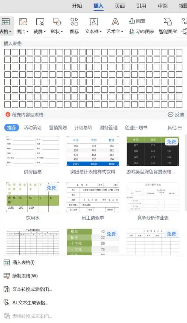 在某些情况下,我们需要用表格来替换文字,首先选择要转换的文本,单击“插入”后,点击“表格”,再点击“文本转换成表格”。同样,将表格转换成文字,只需选择表格,并在“表格”中,点击“表格转换成文本”即可。